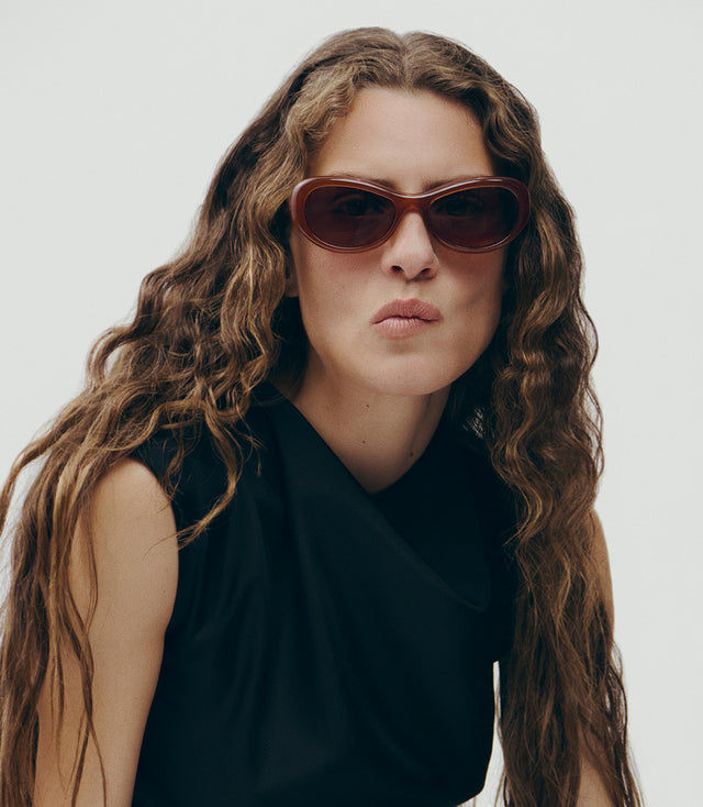 Soeur transpose son goût des lignes affirmées et des couleurs dans une gamme eyewear qui se déploie en trois modèles aux tempéraments distincts. Lee, à la forme masque oversize s’impose par ses lignes sculpturales contemporaines ; Jean à la monture œil-de-chat apporte finesse et féminité au visage ; Amber et son cadre métallique effilé, incarne l’épure discret des années 1990.