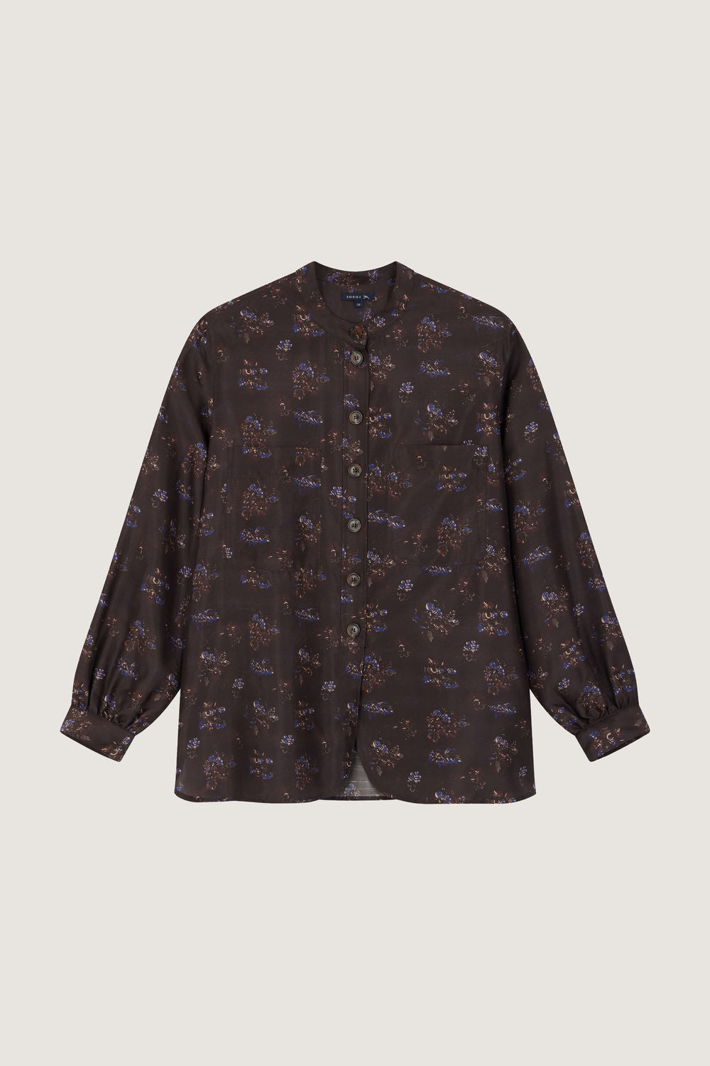 Blouse en doupion de soie imprimée - Coupe droite et ample- Manches longues avec poignets boutonnés- Deux poches plaquées devant- Bas du vêtement forme liquette