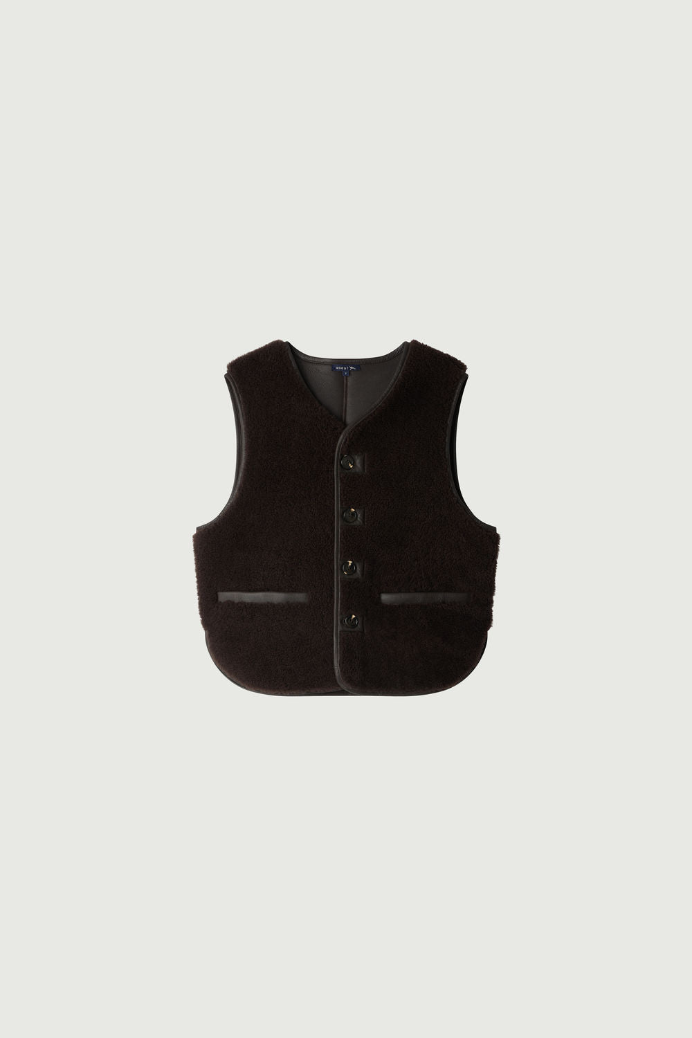 BONIFACIO est un blouson sans manches. Son cuir véritable au toucher lisse apporte une finition élégante à ce lainage chaud. Il est pensé comme un gilet à styliser à l'infini. À glisser sous un manteau sans contraindre le mouvement, ou à superposer à un simple pull en maille.