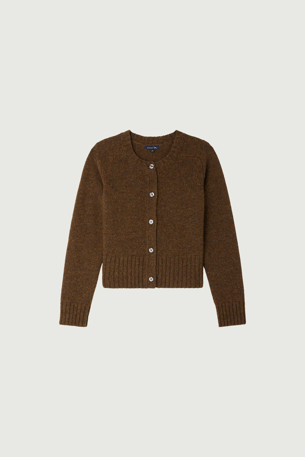 Cardigan court en alpaga et laine marron chiné