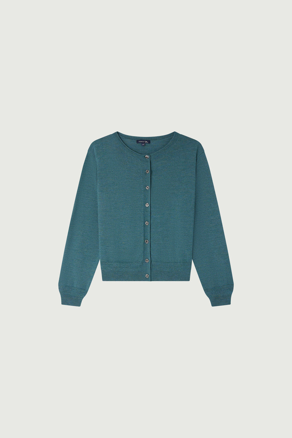 TITA est un cardigan court et carré. Il est tricoté dans une laine mérinos fine et douce à porter à même la peau ou en superposition. Les manches et le bas de corps sont tricotés dans un point fantaisie qui lui ajoute une touche d'originalité. Il accompagnera aussi bien un jean taille haute qu’une jupe épurée.