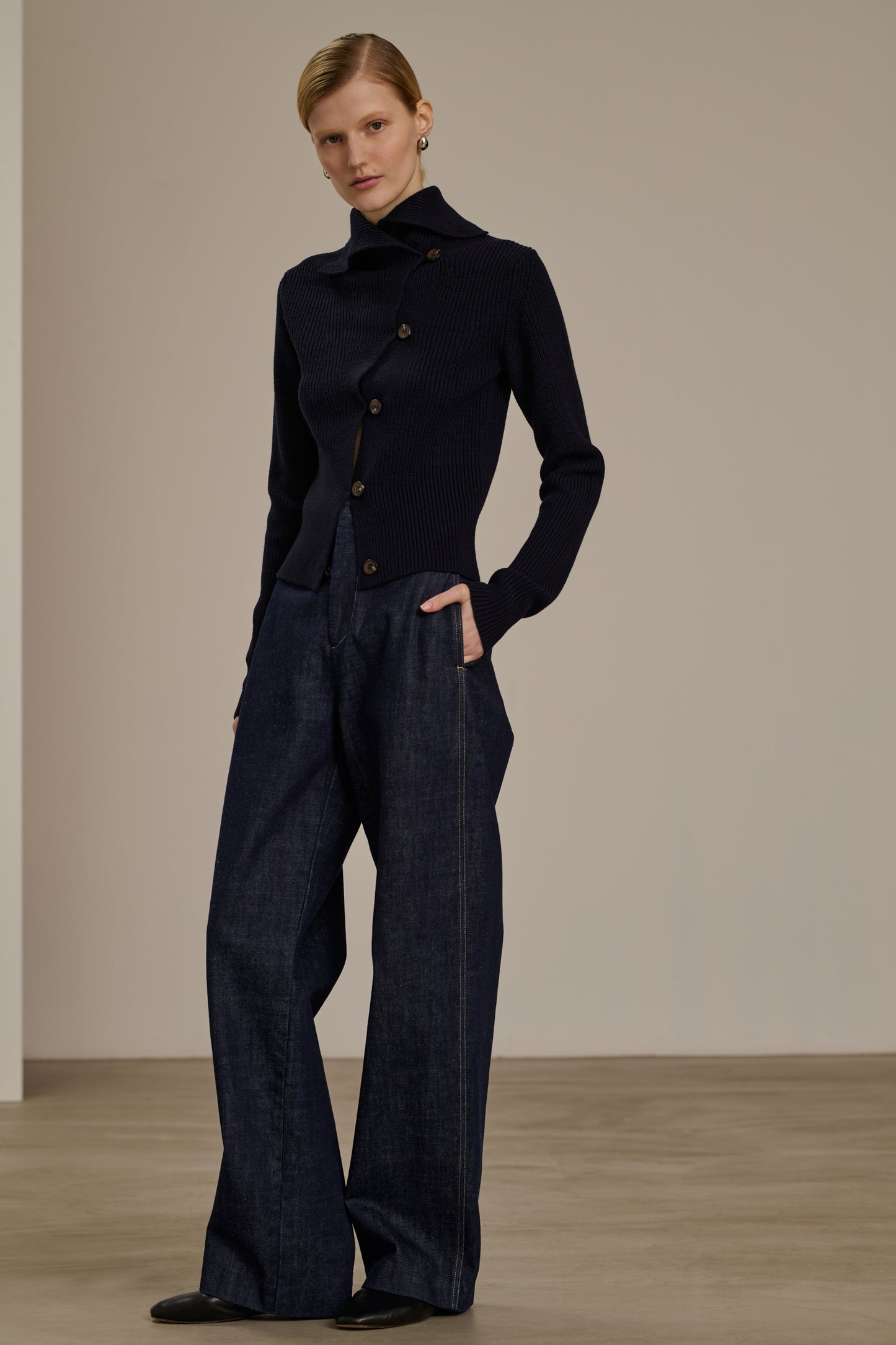 WIMY est un cardigan près du corps en maille côtelée. De nombreux boutons offrent un col modulable, à porter montant ou ouvert. Il peut être porté en cardigan à même la peau ou en superposition comme une veste fine. Il fait partie de notre ligne brodée du monogramme "S". Cette version est en laine mérinos fine et chaude.