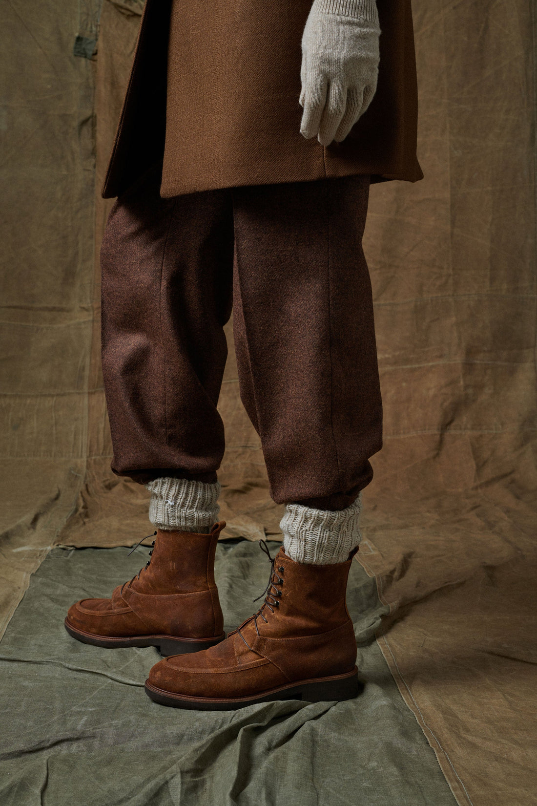Ralph est une bottine en cuir huilé à lacets inspirée des bottes de montagne. Cette croûte de cuir a un aspect naturel car non traitée après l’étape de huilage. Cela ajoute un côté authentique à la bottine qui évoluera au fil de son utilisation avec des variations de couleurs et de textures.