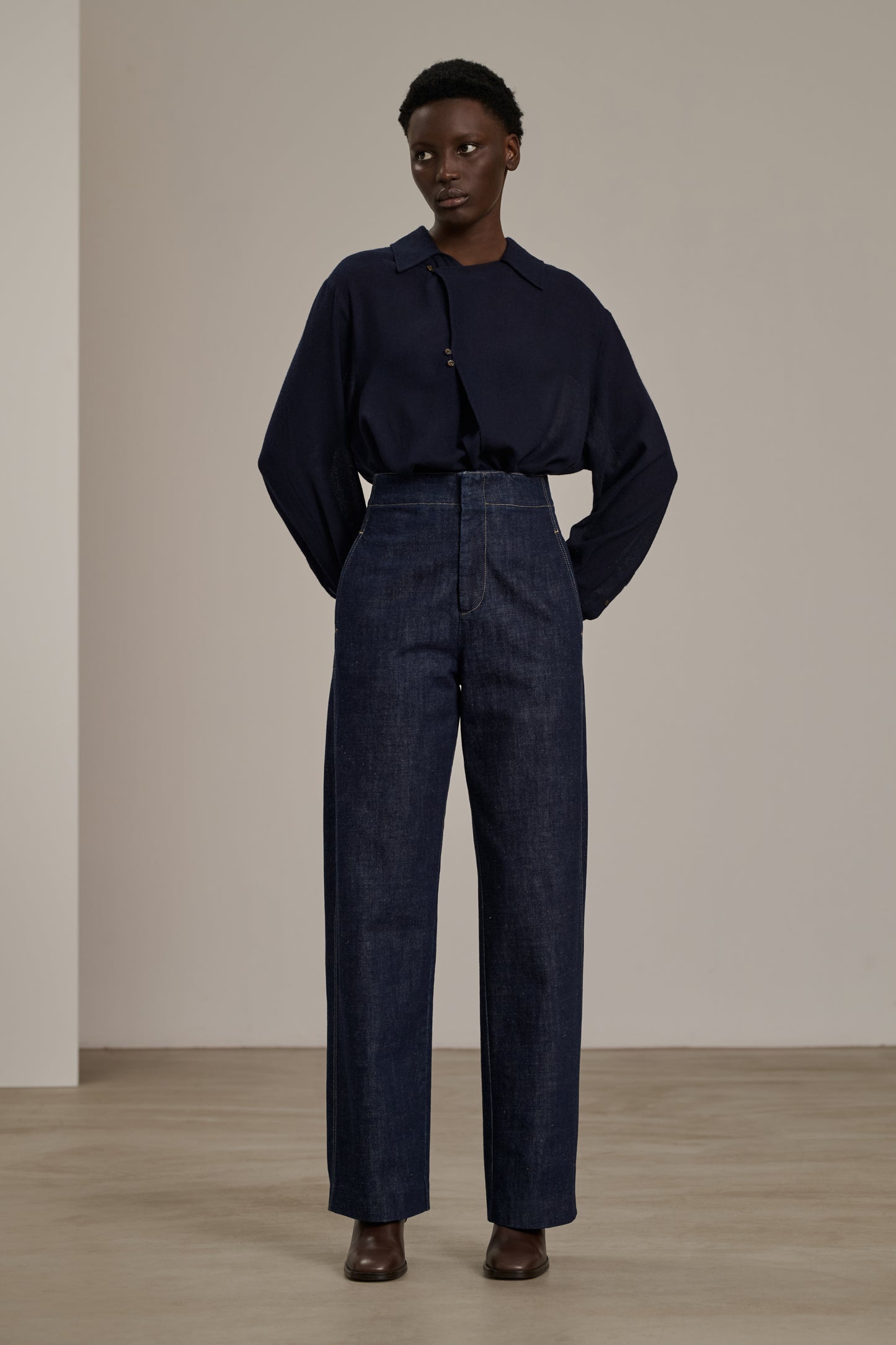 Blouse en crêpe de laine légère navy