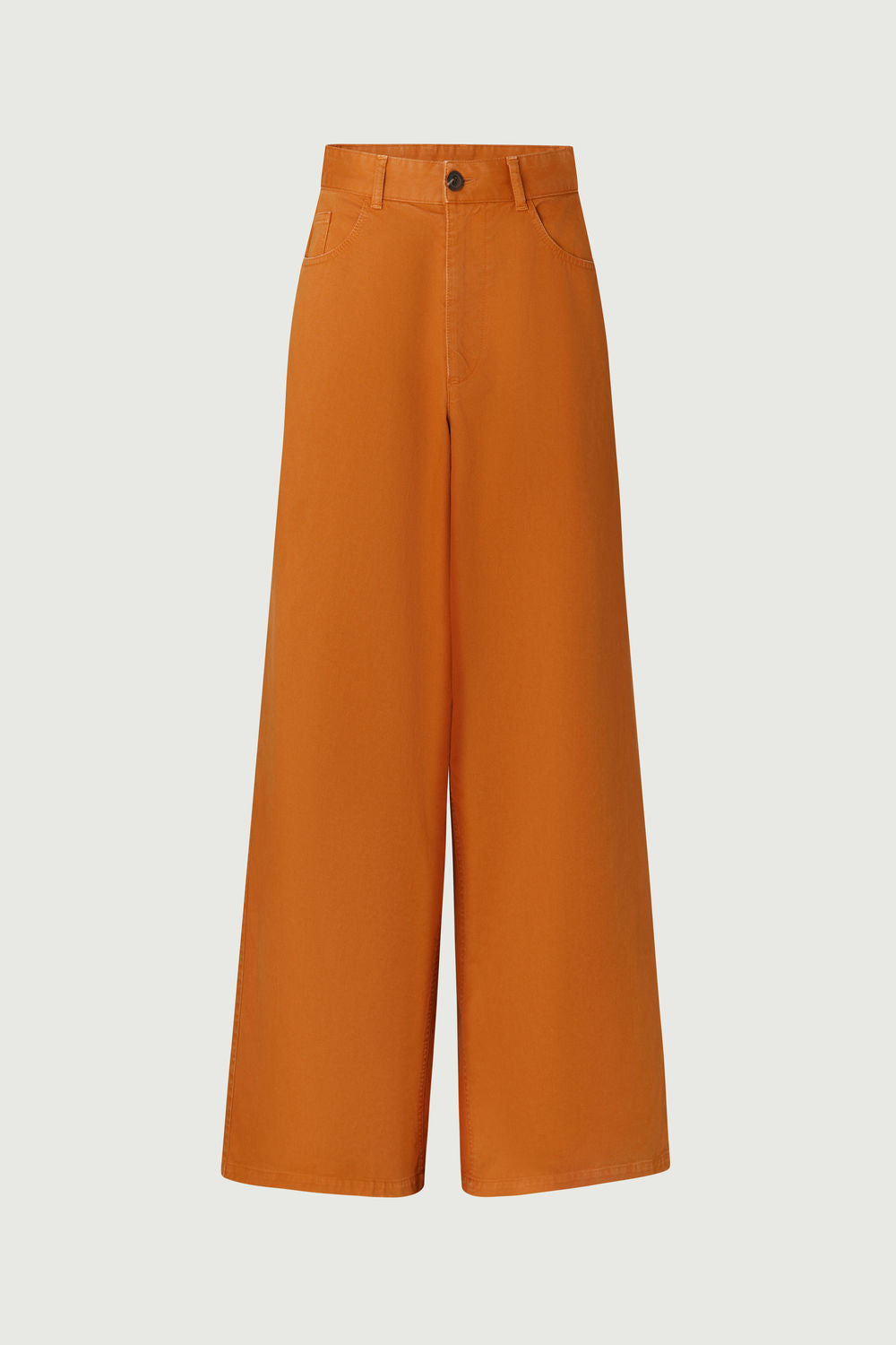 ALEXIS est un pantalon en toile épaisse à la coupe ample et évasée. Son allure est décontractée. Il s'inscrit dans la lignée des looks signatures de Sœur, où l'oversize est maîtrisé.