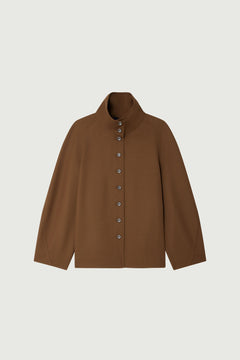 FREJUS est un pantalon à pinces en sergé de coton kaki-bronze. Sa taille cintrée et sa coupe évasée assurent une silhouette élégante. La taille élastiquée au dos garantit un confort optimal.