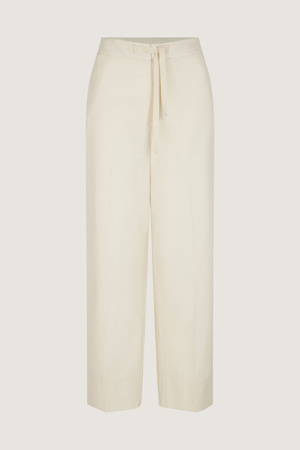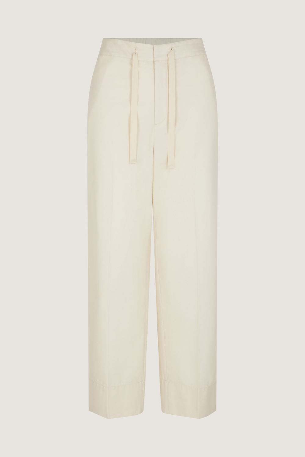 Pantalon à taille élastiquée en toile de coton et soie ecru