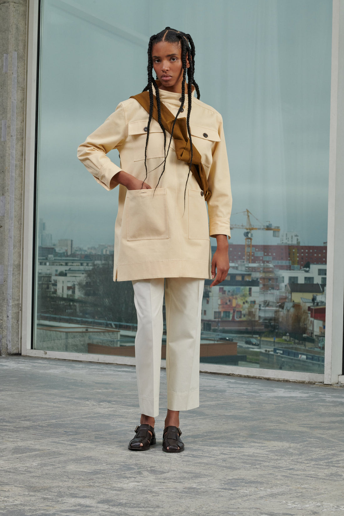 SARAJEVO est un pantalon droit à la taille élastiquée et ajustable grâce à un lien. Un pli cassé le long de la jambe permet d’allonger la silhouette.