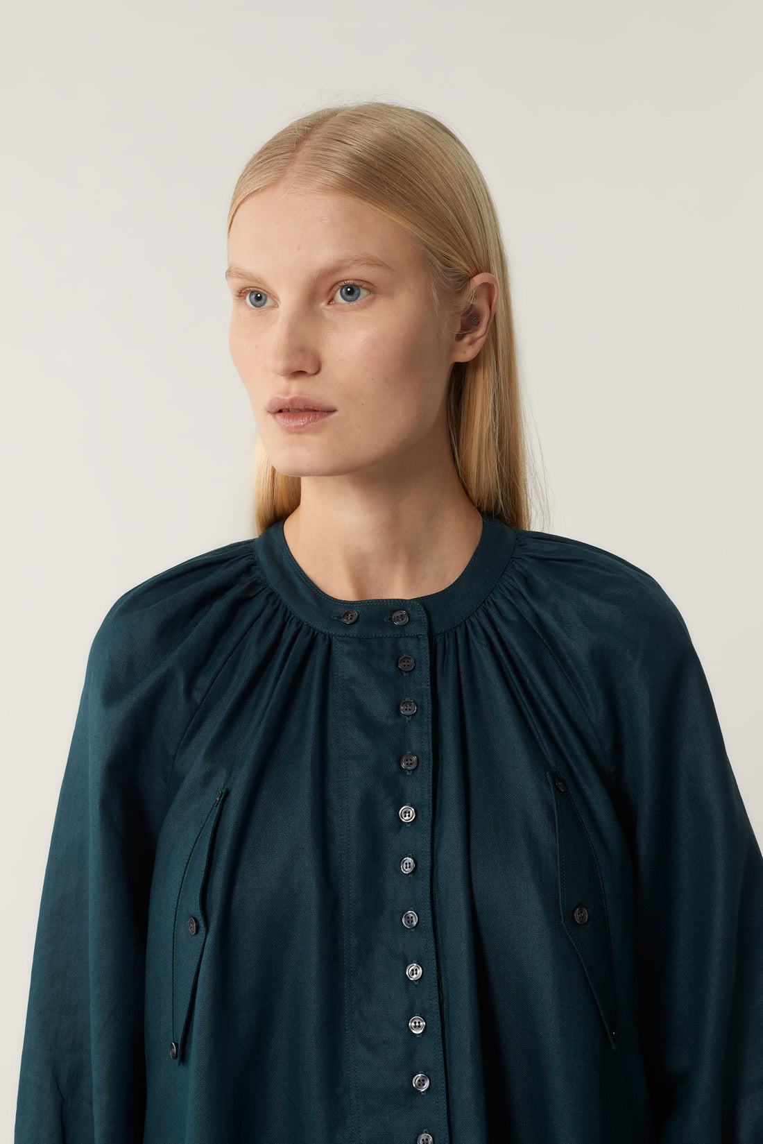 La mannequin mesure 1m75 (5'9) et porte une taille 38.