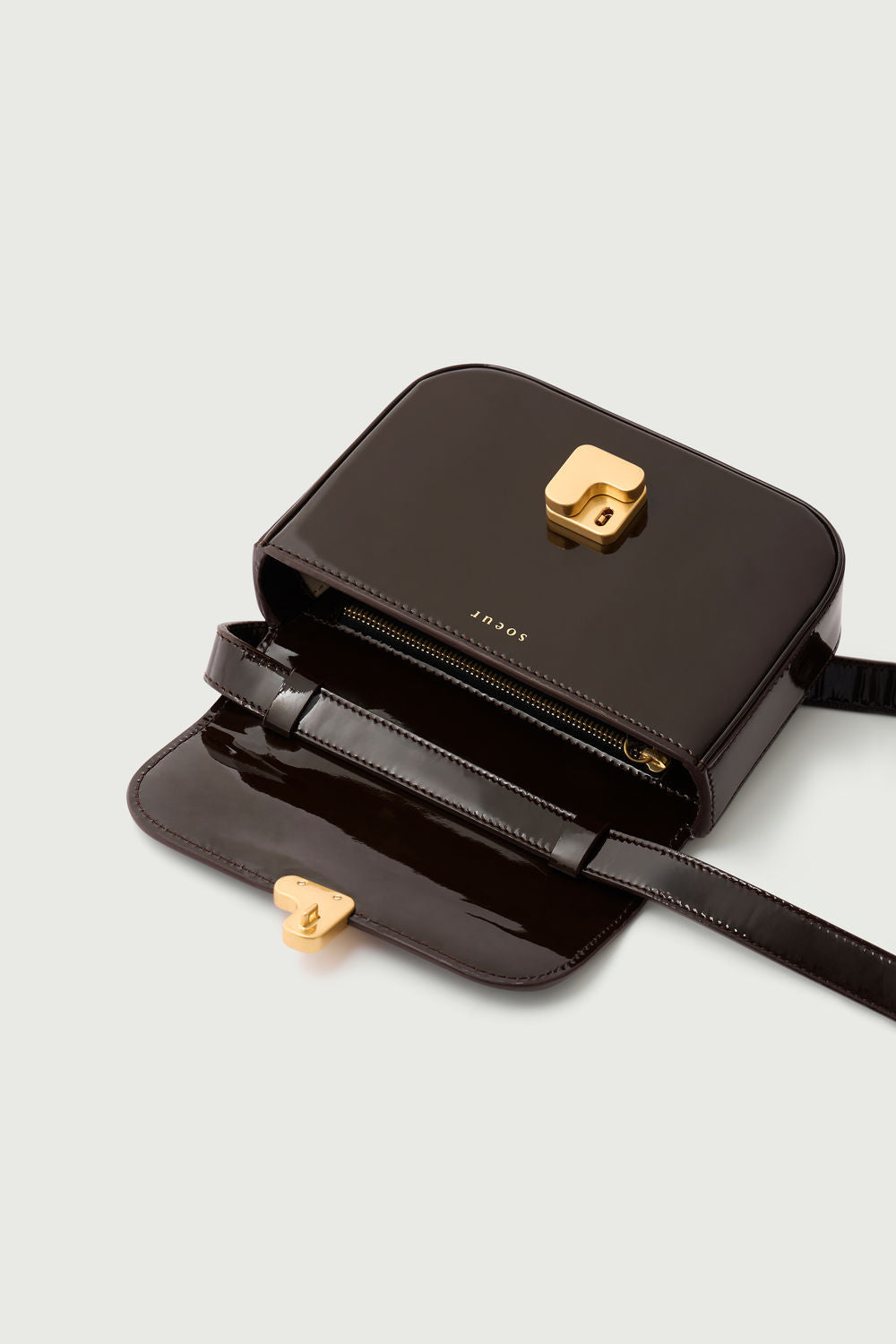 sac bell very mini Mini sac en cuir vernis marron foncé