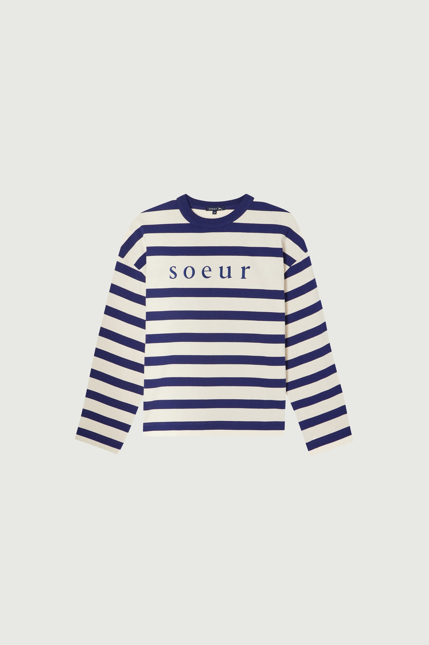 Marinière manches longues à logo "soeur" brodé en coton écru et marine